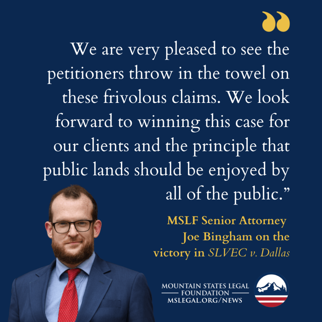 Senior Attorney Joe Bingham, lead counsel for the trail riders, said, “We are very pleased to see the petitioners throw in the towel on these frivolous claims. We look forward to winning this case for our clients and the principle that public lands should be enjoyed by all of the public.”